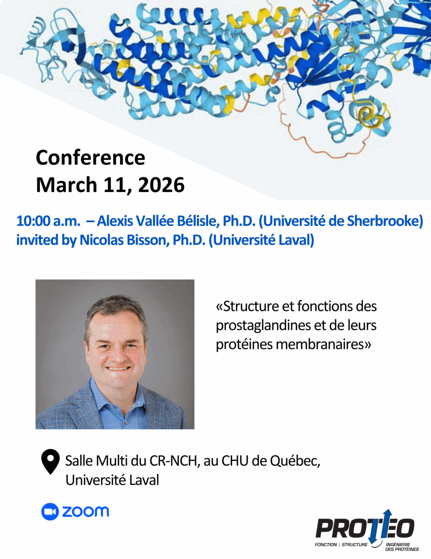 PROTEO is pleased to invite you on Wednesday, March 11 at 10:00 a.m. to the presentation by Martin Audet, Ph.D., professor at l’Université de Sherbrooke, invited by Nicolas Bisson, Ph.D., professor at Université Laval. The event will take place at the Salle Multi of the CR-NCH, at the CHU de Québec, at Université Laval.